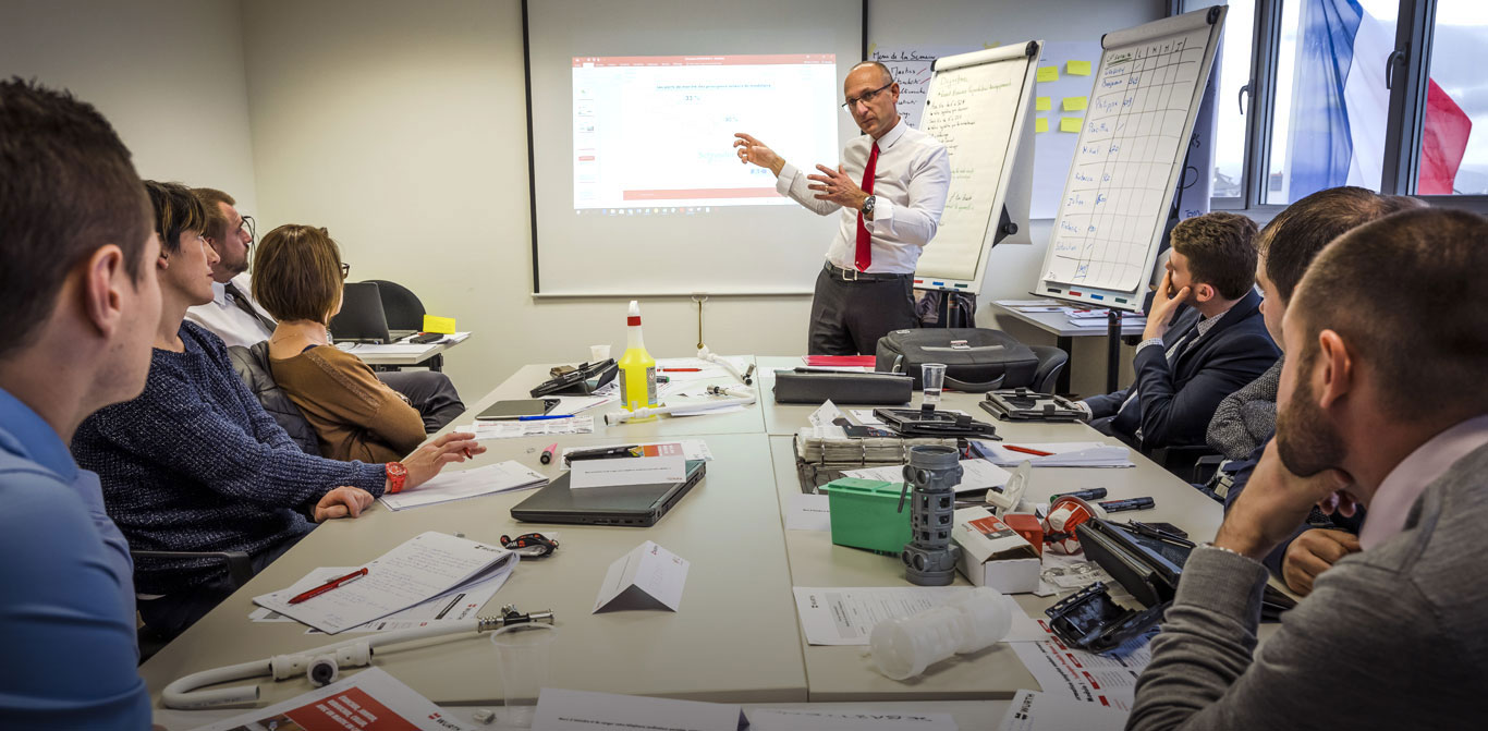 Lors de cette formation, le commercial acquiert toutes les techniques de vente, de la préparation à la conclusion. Des mises en situation permettent au vendeur de s’exercer dans des circonstances proches du réel augmentées par le vécu professionnel des nouveaux collaborateurs afin de favoriser le partage d’expériences au sein du groupe.
